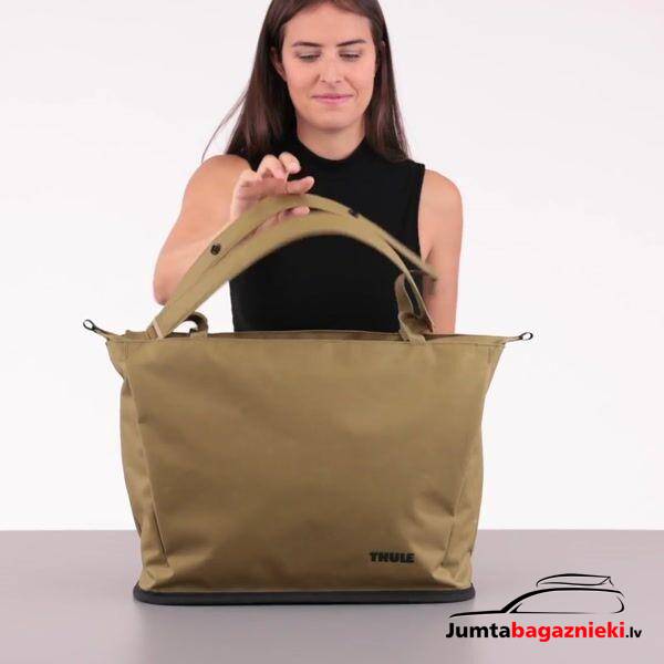 Thule Aion tote soma ļauj viegli pāriet no biroja uz pludmali, pateicoties daudzpusīgām funkcijām un izturīgam, ūdensnecaurlaidīgam audumam.