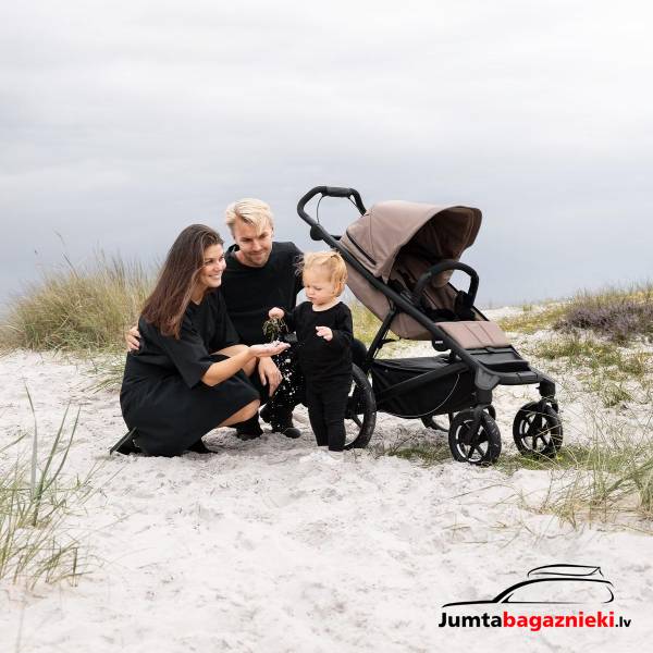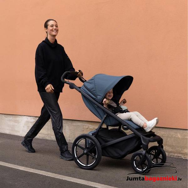 - Качественная подвеска в сочетании с надувными шинами обеспечивает плавную езду как родителю, так и ребенку по любой местности.